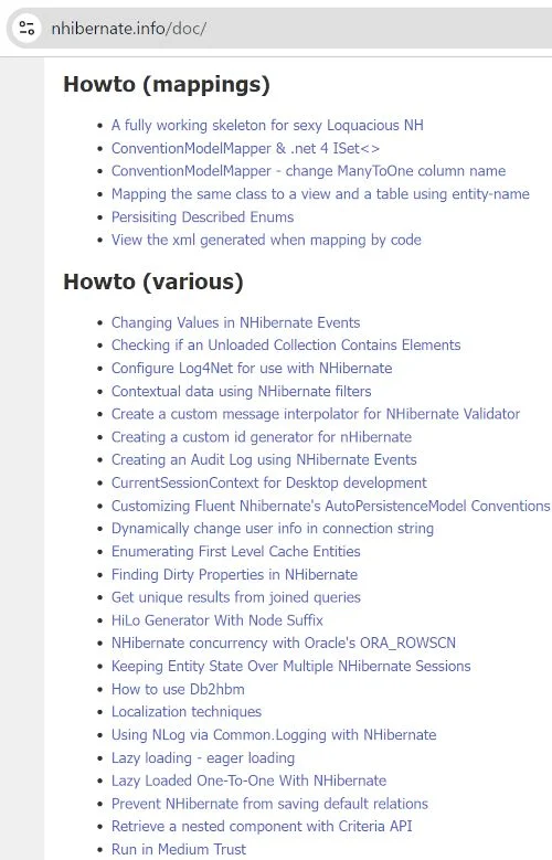 Look at the image below. It’s a screenshot of part of the NHibernate’s table of contents.